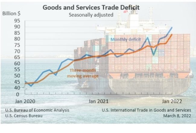 January trade figures show 2022 is starting off with the largest-ever trade gap between the U.S. and other countries.