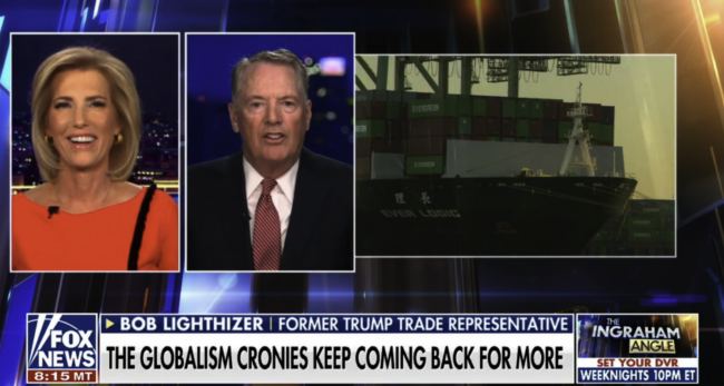 Ambassador Bob Lighthizer, the former U.S. Trade Representative in the Trump administration, joined Laura Ingraham on Fox News Channel to discuss trade, the TPP, and