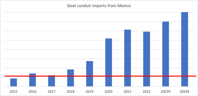 U.S. imports of steel conduit from Mexico have exploded since 2017.