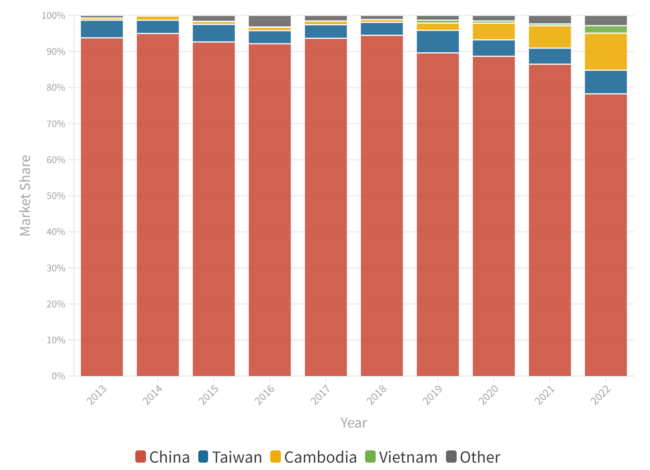 Imports take 97% of the US bicycle market. China dominates but Cambodia, Vietnam shares grow as tariffs bite.