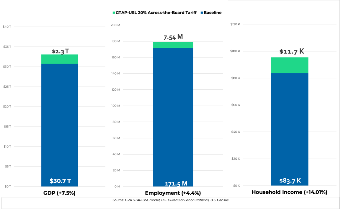 Figure 1. Substantial economic growth from a 20% tariff in new GTAP-USL model