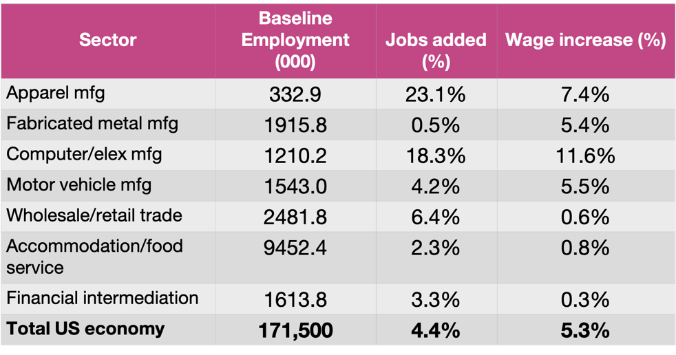 Table 1. Substantial job gains and wage increases in manufacturing sectors from the tariff.