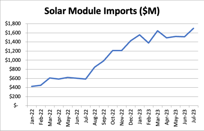 Solar module imports so far this year are 179% up on last year.